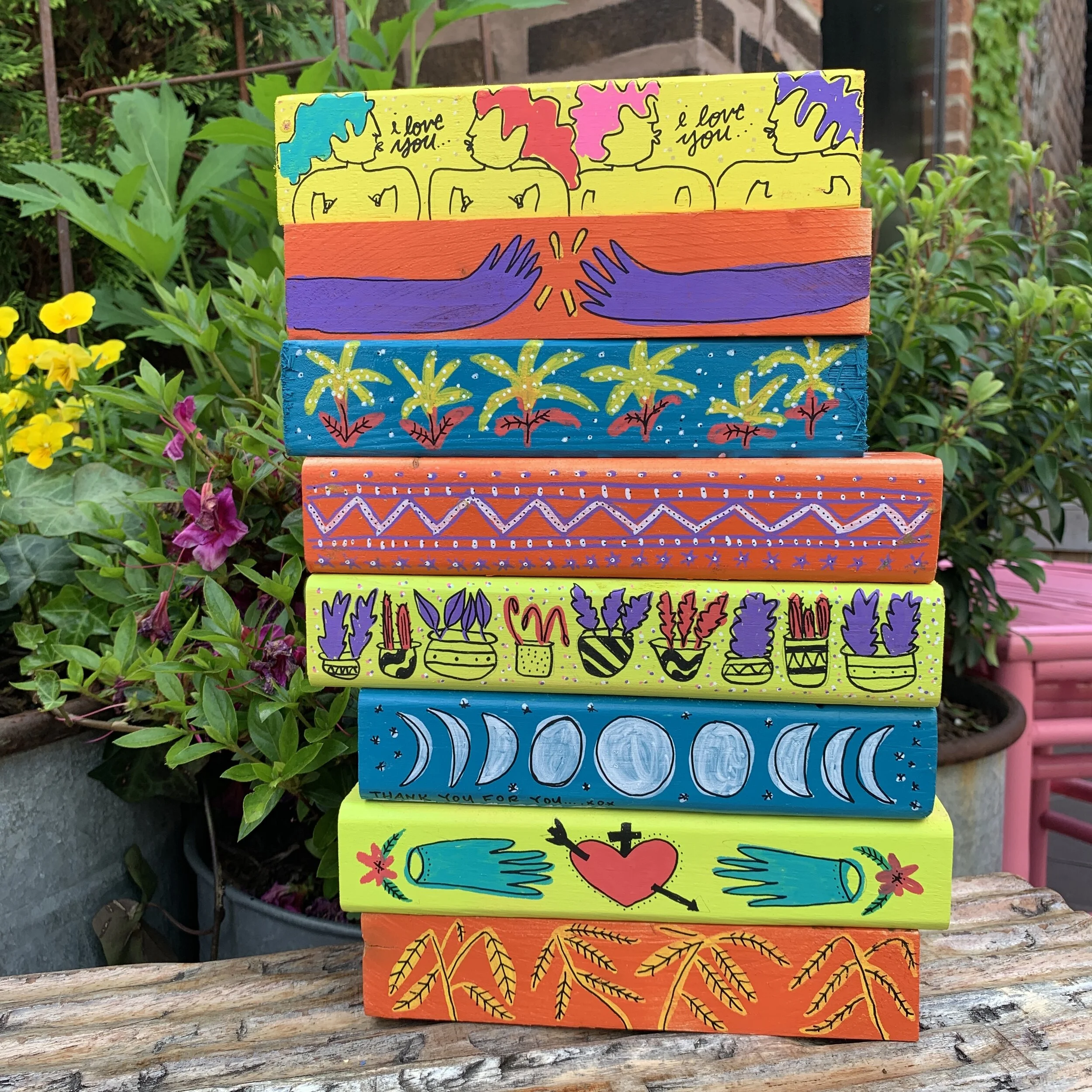 The Broken Shaker, located at the Freehand Hotel NYC, has a funky style for its rooftop bar located in Manhattan, NYC. These are custom hand-painted and pieces made to fit along with the aesthetic of the bar.